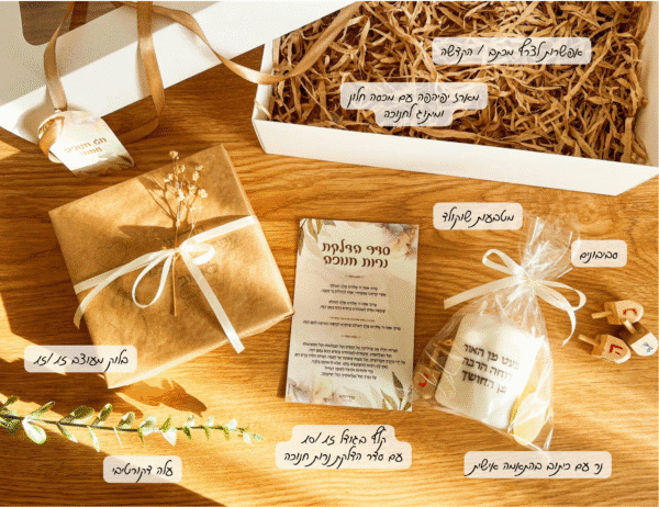 המארז משלב בין מסורת, חוויה וחגיגיות – מתנה שתשאיר זיכרון מתוק ומואר גם אחרי החג.
