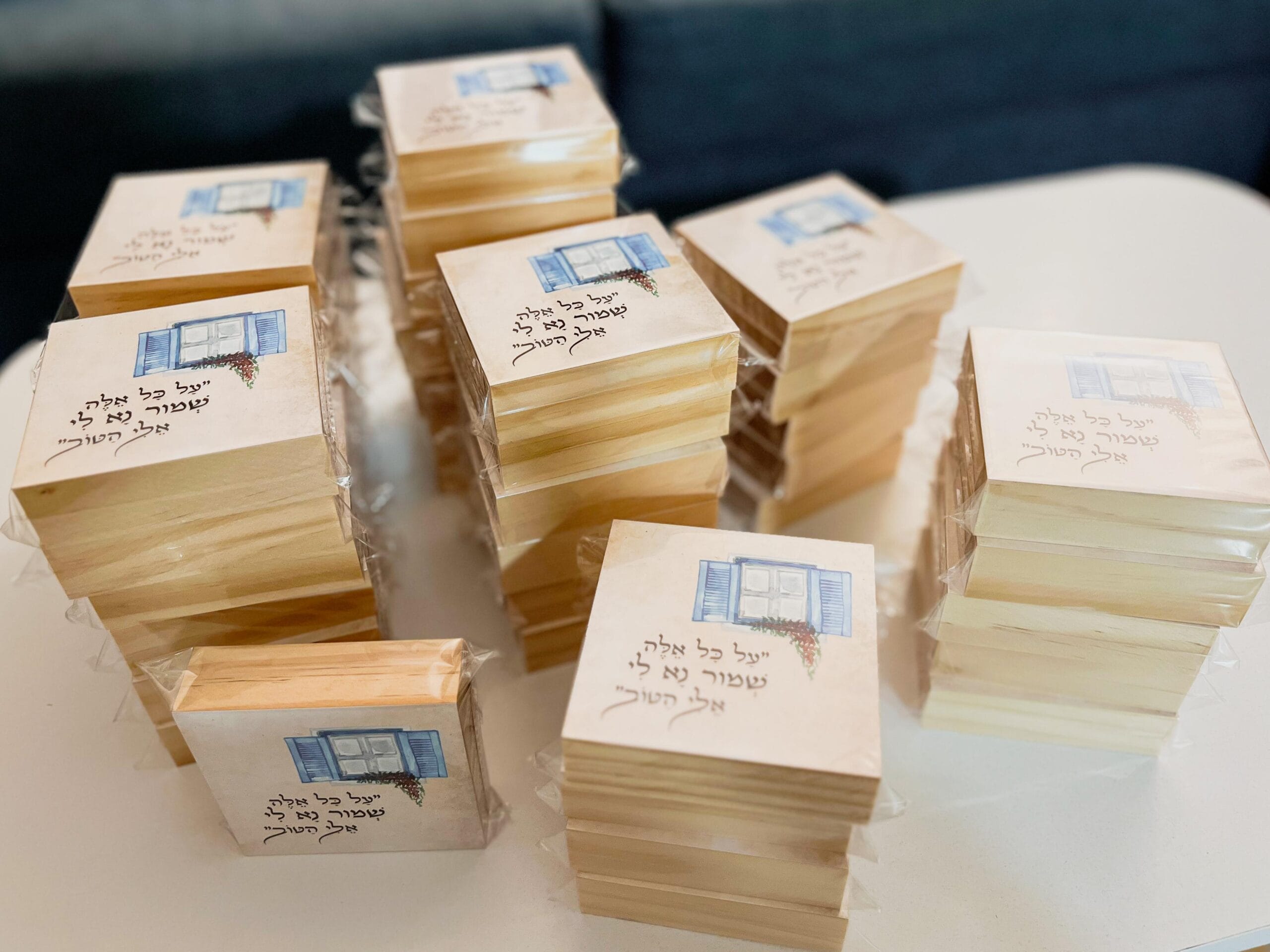 ???? ניתן להוסיף לעיצוב משפט הקדשה לאירוע או למתנה (מזכרת מ… / באהבה…), במידה והעיצוב אחיד.