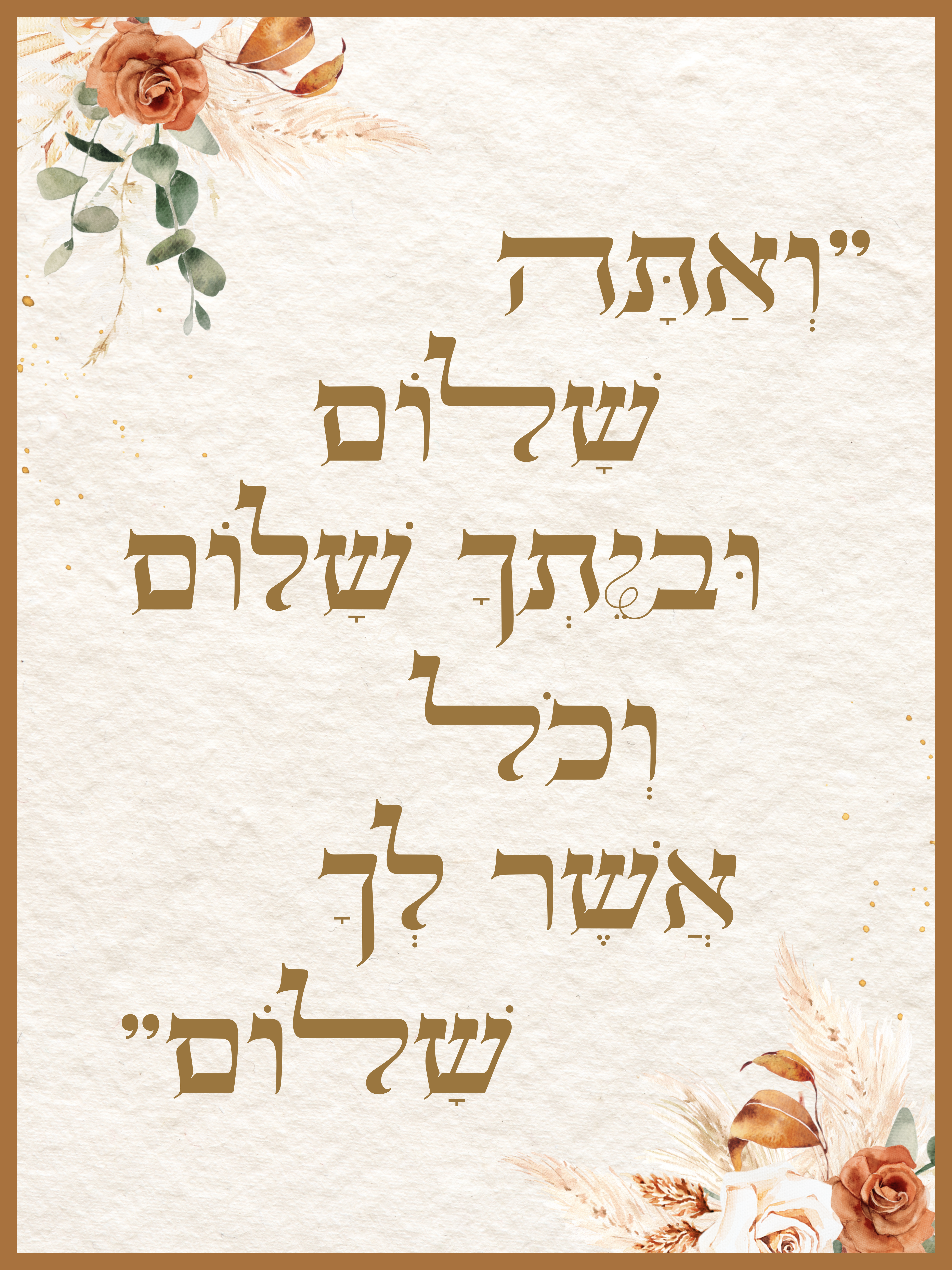ומגנט נוסף באותו הגודל עם הפסוק: “ואתה שלום וביתך שלום וכל אשר לך שלום”